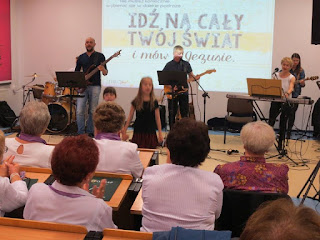 Więc może na początek skromniej: Zróbmy razem coś dobrego. Realność tego kierunku potwierdził Przegląd piosenki i poezji ekumenicznej zorganizowany przez gołdapską bibliotekę. Bo oto na scenie pojawili się ludzie, którzy w różnych językach, różnymi formami i w ogóle na różne sposoby robili jedno - wielbili Pana. I cóż się okazało? Nikt nikogo nie uderzył, nikt na nikogo nie podniósł głosu, czy choćby spojrzał krzywo. Wszyscy (na to przynajmniej wyglądało) razem wznieśli swoje myśli ku Najwyższemu. Wszyscy to znaczy całkiem spora grupa ludzi, ponieważ na widowni w auli trudno było znaleźć wolne miejsca.